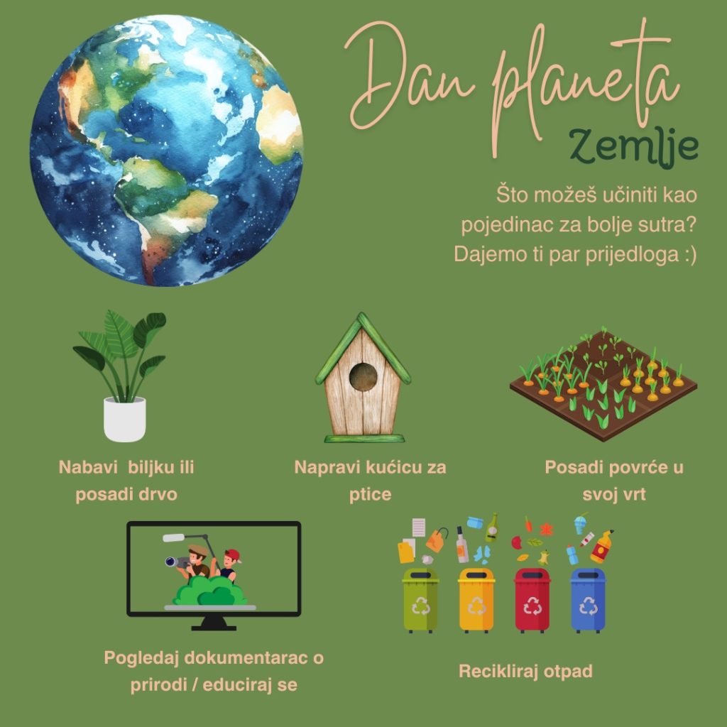 Danas smo obilježili Dan planeta Zemlje. Učenik Ljubo Primorac uz mentorstvo nastavnice Marele Talajić održao je učenicima 1.a razreda smjera Web dizajner predavanje o gospodarenju otpadom pod naslovom “There is no planet B”.